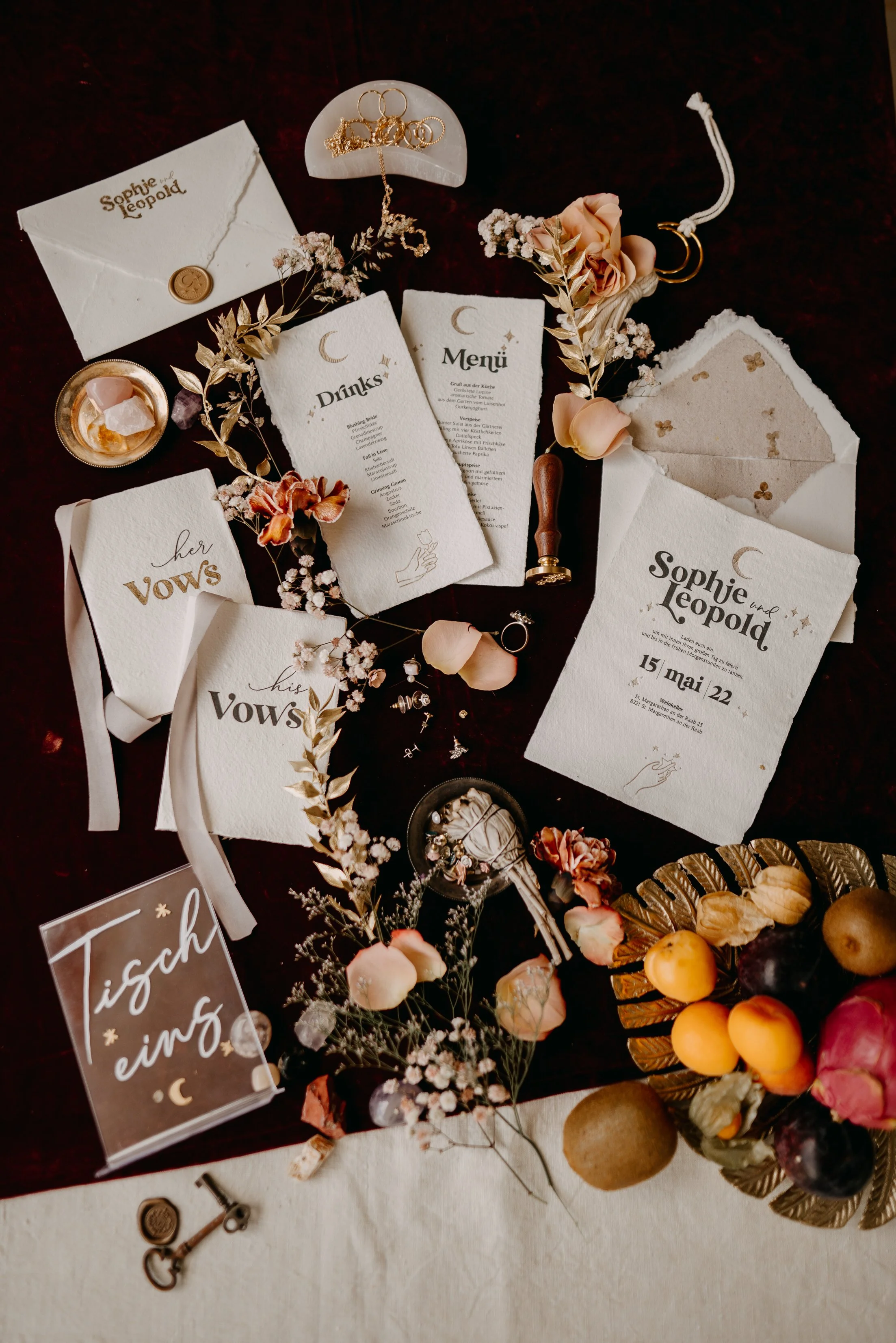 Ich begleite euch bei jedem Schritt und sorge dafür, dass jede Karte und jedes Detail nicht nur wunderschön aussieht, sondern euch als Paar widerspiegelt.